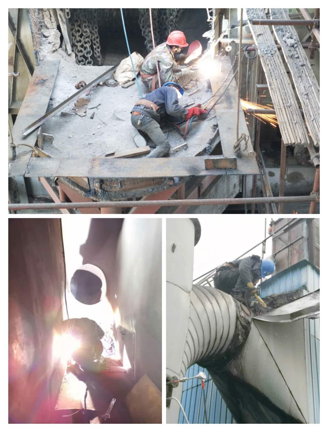 說到狹小的空間,我又想到了幾天前補(bǔ)焊收塵管道的維修工,那里也是僅能一人爬進(jìn)去作業(yè),但維修工張凌云和馬海濤沒有退縮,辦理好作業(yè)票證,他們倆爬進(jìn)了收塵器里認(rèn)真而又圓滿的完成了補(bǔ)焊作業(yè)。