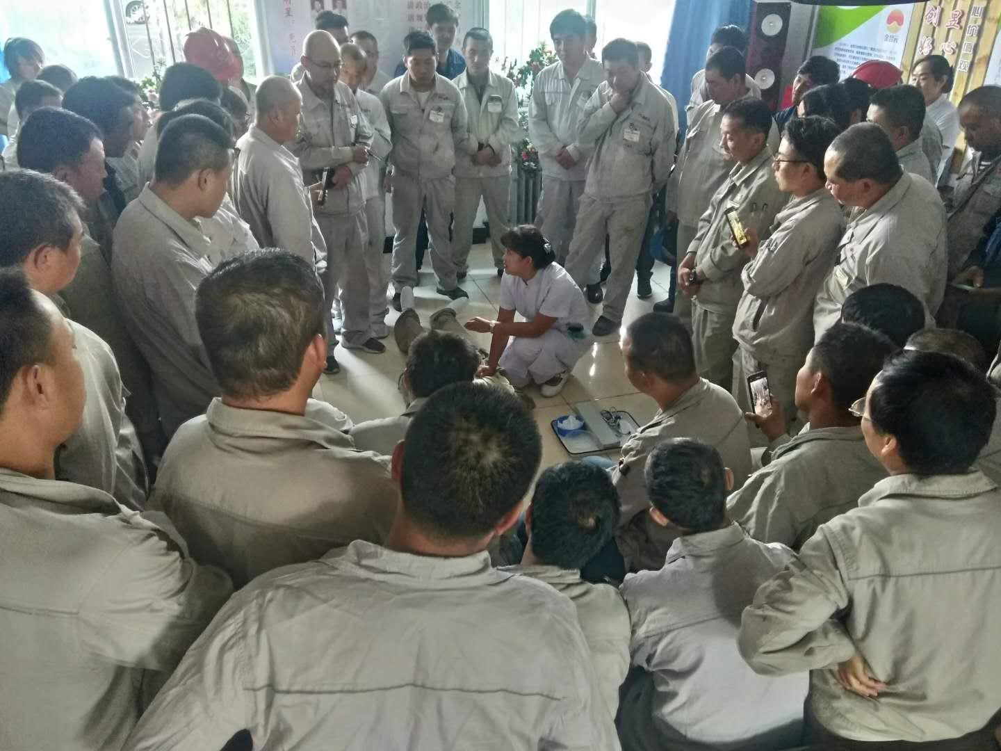 2019年9月3日下午16:00分資源再生公司邀請(qǐng)青銅峽市醫(yī)院急救科朱醫(yī)師、李護(hù)士長(zhǎng)到公司現(xiàn)場(chǎng)模擬心肺復(fù)蘇急救演練操作培訓(xùn),各生產(chǎn)裝置班組長(zhǎng)以上人員、科室各專業(yè)60余人參加了培訓(xùn)。