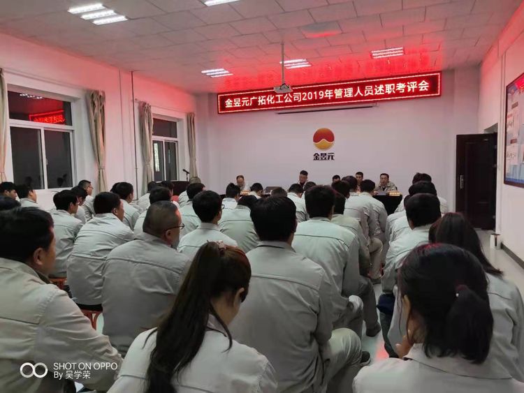 2019年11月19日—20日,廣拓化工公司利用下班時(shí)間組織召開了2019年度管理人員述職考評(píng)會(huì),會(huì)議由興昊黨支部副書記王志杰主持,化工公司總經(jīng)理,副總經(jīng)理,安全總監(jiān),副總工程師出席,32名述職人員及110名職工代表參加。