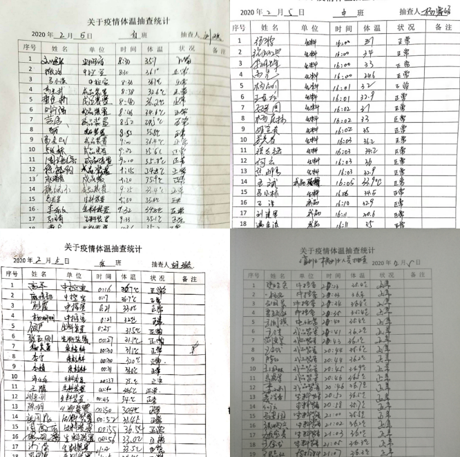 晨檢、夜查、登記,管理人員干著和“醫(yī)務(wù)人員”一樣的工作,“望”、“聞”、“問”、“切”,及時(shí)掌握員工身體狀態(tài)……