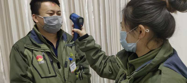 在園區(qū)南門,他們除了認真、細致,剩下的就是堅強的毅力和擔(dān)當(dāng)敬業(yè)精神。當(dāng)日截止下午17時整,他們檢測、消毒、登記車輛56輛,人員57人,車輛正常,人員體溫均在正常范圍。