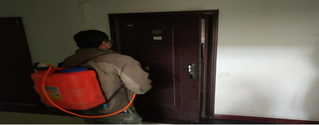 在宿舍進行衛(wèi)生消毒。