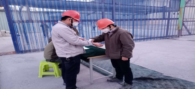 在園區(qū)南門,今日截止下午17時整,他們檢測、消毒、登記車輛112(其中水泥14車輛,熟料4車輛,液堿2車,鹽酸1車),人員119人信息,體溫均在正常范圍,另外隨行24人體溫均在正常范圍。