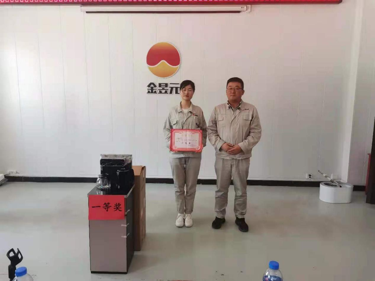 經(jīng)過(guò)激烈角逐,最終本次比賽的一等獎(jiǎng)由電解裝置的海娟獲得,獎(jiǎng)品為茶吧機(jī)一臺(tái),化工公司總經(jīng)理賈存富為她頒發(fā)了獎(jiǎng)品和榮譽(yù)證書(shū)。