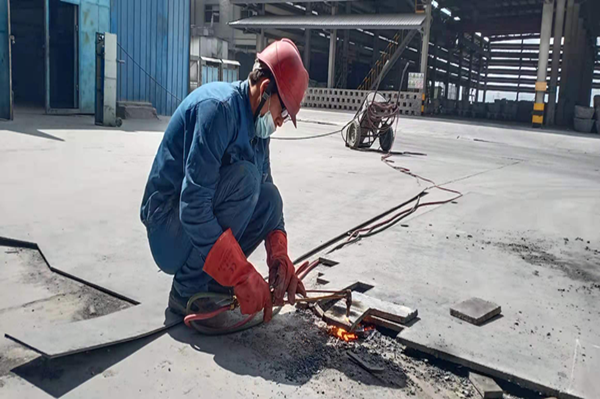 炎熱的成品庫(kù)旁,他們正在安裝區(qū)域防護(hù)網(wǎng)。測(cè)量、打眼、安裝、緊螺絲,每一個(gè)細(xì)節(jié)都不能馬虎大意,雖頂著烈日,他們干工作有條不紊,仔細(xì)規(guī)劃著距離,精心安裝每一扇防護(hù)墻。相較于爐面高溫檢修,此刻的溫度,他們耐得住、經(jīng)得住。是的,他們已是千錘百煉,經(jīng)得起這“火”的考驗(yàn)。