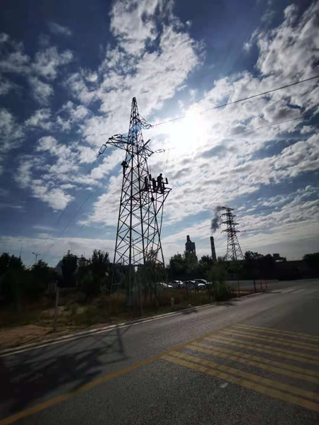 為了保證井組安全,輸電線路及桿塔檢查維護(hù)工作必須保證在8小時(shí)內(nèi)完成,時(shí)間緊、任務(wù)重。所有人員分成16個(gè)小組,每個(gè)小組由2-3名檢修人員和1名監(jiān)護(hù)人組成,他們分工明確、各司其職、相互配合,用嫻熟的操作手法和有序的操作流程,緊固著每一個(gè)螺桿,清理著每一處積灰,保證線路檢查維護(hù)工作能如期、順利、安全、高效完成。