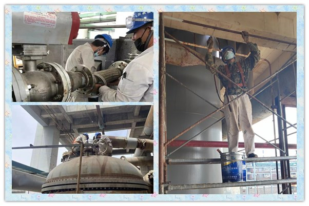 夏日炎炎,維修人員在高溫下對(duì)設(shè)備進(jìn)行檢修,不怕苦不怕累,裝置及時(shí)提供飲用水,防止人員在檢修的過(guò)程中發(fā)生中暑,同時(shí)及時(shí)的完成工作任務(wù),保障生產(chǎn)運(yùn)行正常。在檢修中,堅(jiān)持安全第一,揮灑汗水,關(guān)鍵時(shí)刻義無(wú)反顧,挺身而出,困難面前,毫無(wú)退卻,只為檢修工作安全。