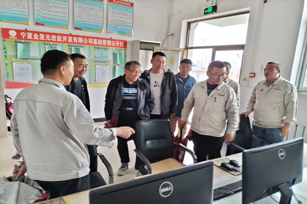 2022年8月25日上午,自治區(qū)綠色礦山建設(shè)考評(píng)驗(yàn)收小組組長(zhǎng)朱平,帶領(lǐng)綠色礦山建設(shè)考評(píng)驗(yàn)收小組,在原州區(qū)自然資源局礦產(chǎn)科張主任的陪同下,蒞臨金昱元巖鹽開發(fā)公司開展綠色礦山建設(shè)第一次考評(píng)驗(yàn)收工作。公司總經(jīng)理尚繼榮、副經(jīng)理莊濤及采鹵副總工程師溫艷廷等陪同檢查。