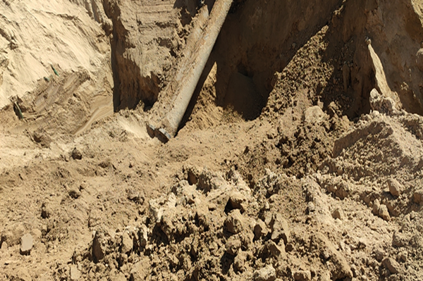 8月24日晚上22時30分,鹽業(yè)公司礦部至園區(qū)淡水流量下降,調(diào)度室及時將情況匯報給相關領導,并安排采輸鹵裝置和鹽硝裝置分段巡查淡水管道。經(jīng)巡查發(fā)現(xiàn),因連續(xù)降雨天氣,淡水管道水泥西門深溝處因土壤下陷導致管道連接處鋼襯法蘭呲漏。
