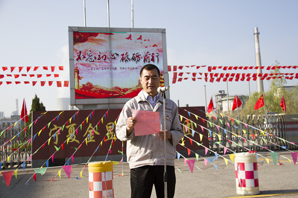 升國旗儀式伊始,集團公司黨委副書記王立軍,集團公司副總裁、青銅峽片區(qū)總經理尚興向升國旗儀式致辭。