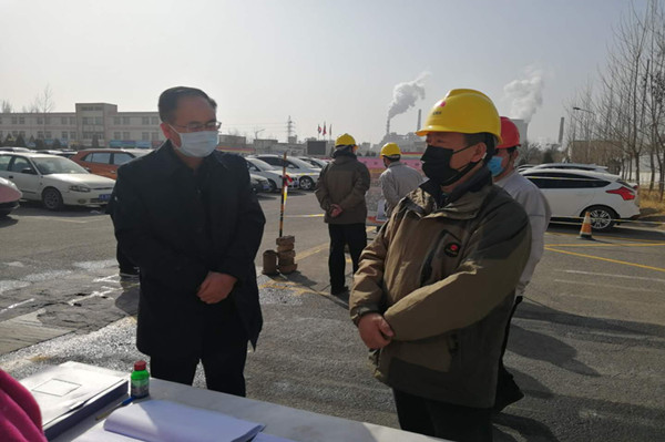 金永靈市長按常規(guī)程序進行測量體溫和登記信息,并翻閱出入大門人員信息登記臺賬。他詳細了解了集團公司疫情防控工作,總裁葉森和黨委副書記兼工會主席王立軍逐一回答。