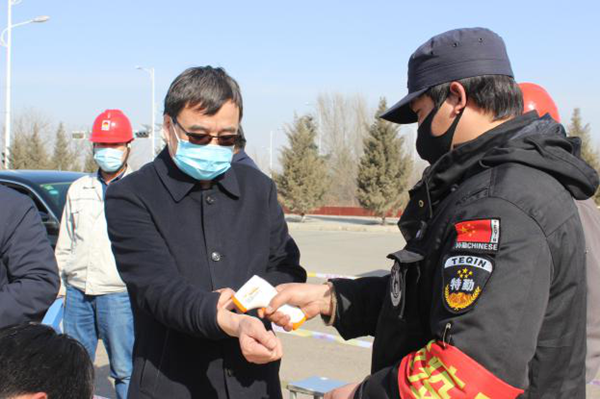 朱洪軍一行在疫情防控檢測點按檢測程序測量體溫、登記信息,詳細查看了疫情防控登記臺賬并到工作現(xiàn)場檢查。經過細致檢查,對固原片區(qū)疫情防控工作給予了充分肯定。