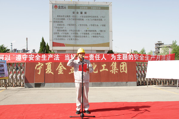 今年6月份是全國第21個“安全生產(chǎn)月”。今年的活動主題是“遵守安全生產(chǎn)法,當(dāng)好第一責(zé)任人”。6月1日,寧夏金昱元化工集團股份有限公司分別在青銅峽片區(qū)和固原片區(qū)舉行“安全生產(chǎn)月”活動啟動儀式。